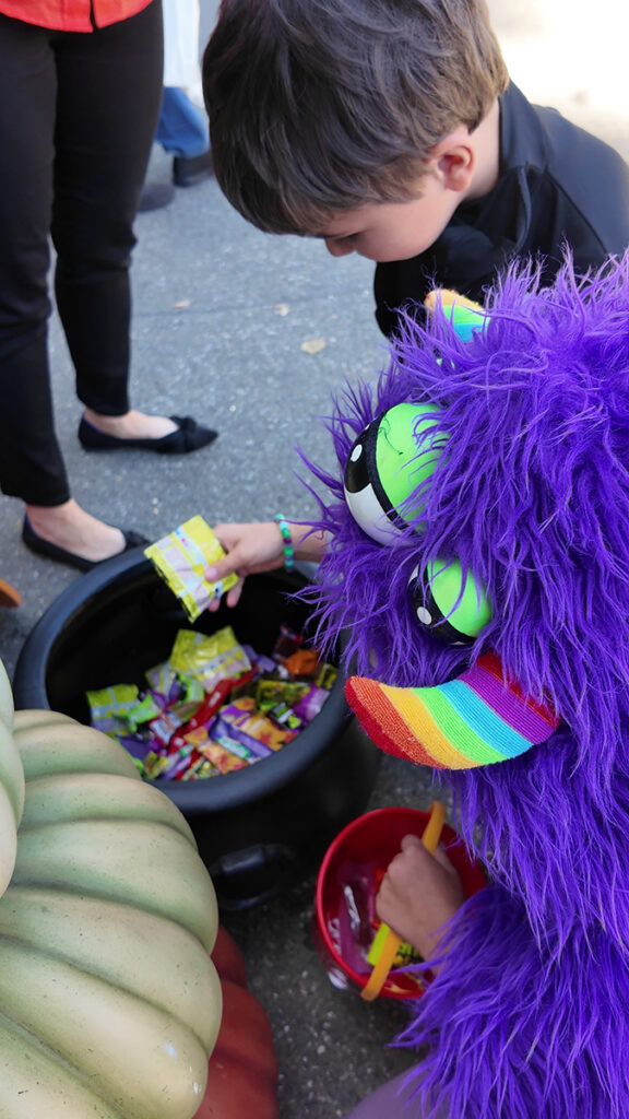 Meanwhile, there were even more activities to see and do. The jump house, inflatable axe throwing, carnival games and bubble lady returned, and were joined by a puppet show. As has been noted, crafting areas were relocated this year and included donut decorating, keychain/paper coloring, face painting, and pumpkin decorating.