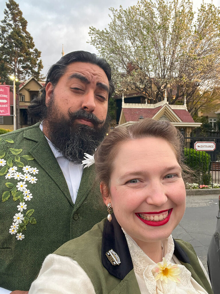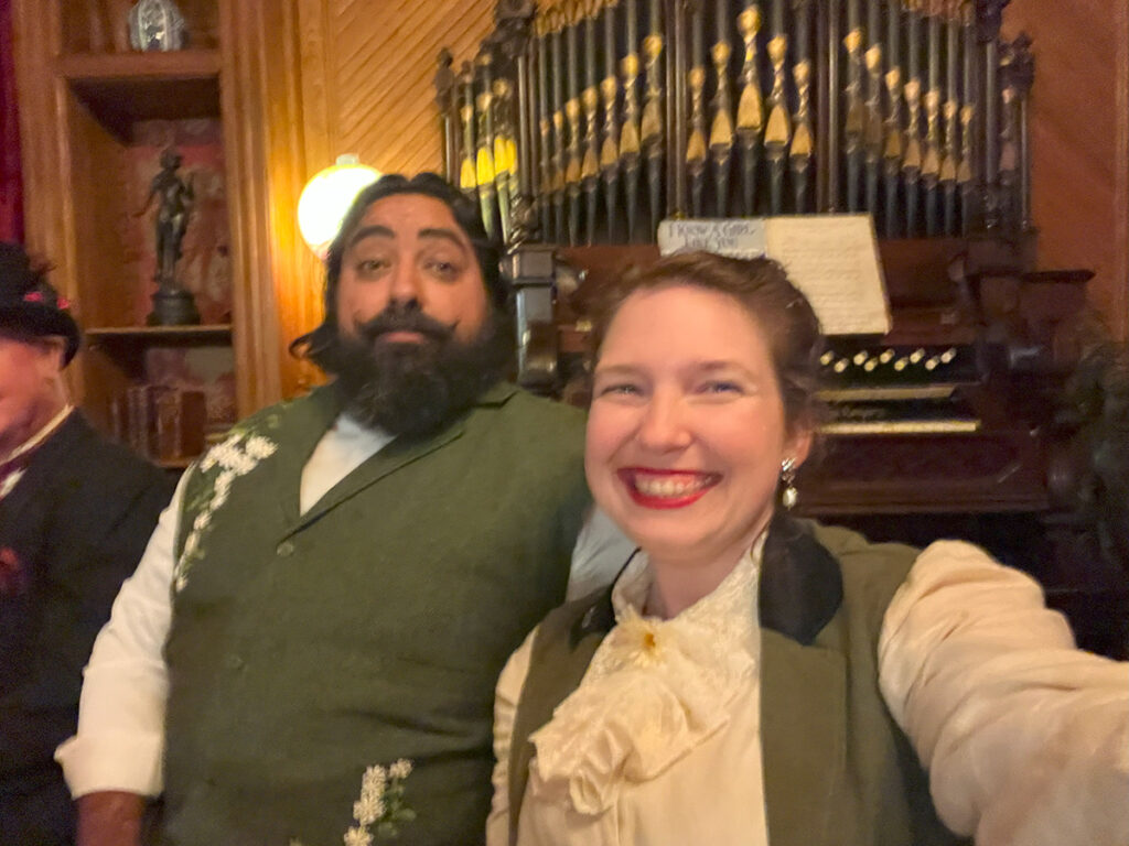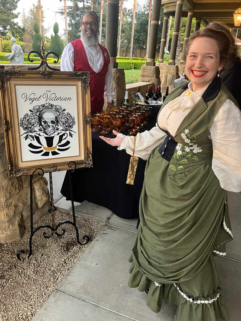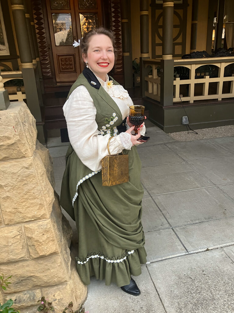 For those unfamiliar, the creative hostess of our evening was Diana of the Vogel Victorian. Diana is living the dream in her gorgeous Victorian home. For the past two years, she gets to dress up and host haunted high tea parties four months at a time. I got to learn quite a bit about Diana thanks to episode 51 of By Pumpkin’s Light. Be sure to give the episode a listen and follow Diana on the Vogel Victorian Instagram! The episode was quite the delight as I finished sewing details onto my look for the haunted tea. This past weekend at Winchester won’t be the only places to encounter the Vogels this year. Keep up with them on social media as they bring their tea parties on the road! Their next stop will be at the Lizzie Borden house in May for Mother’s Day.