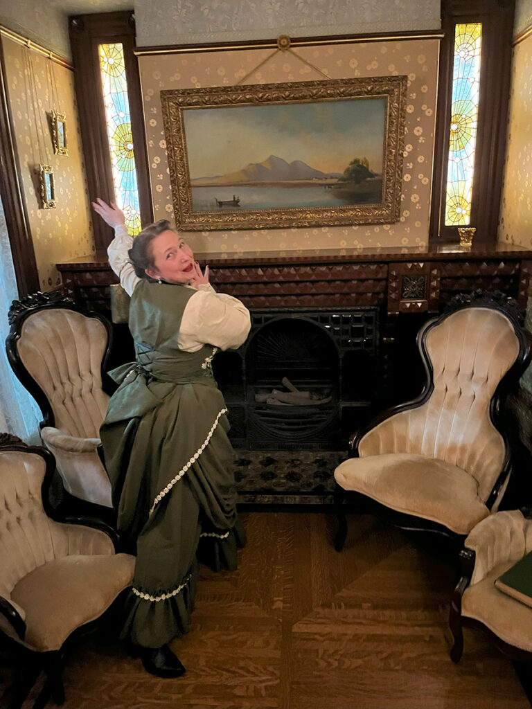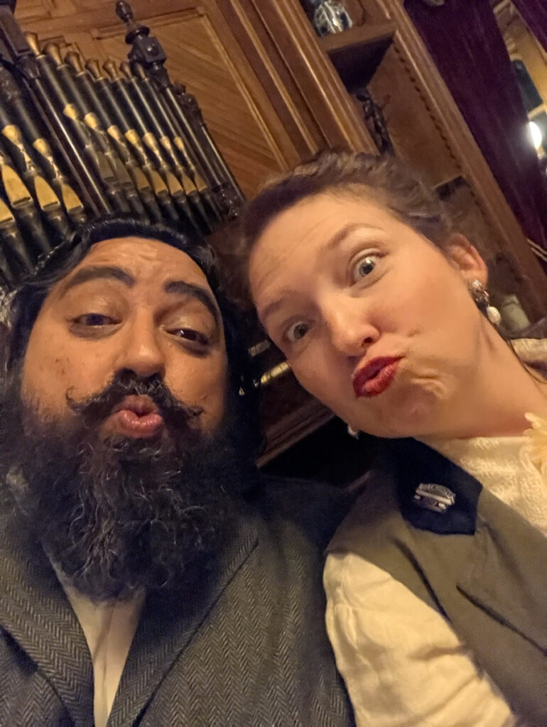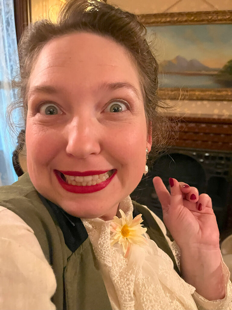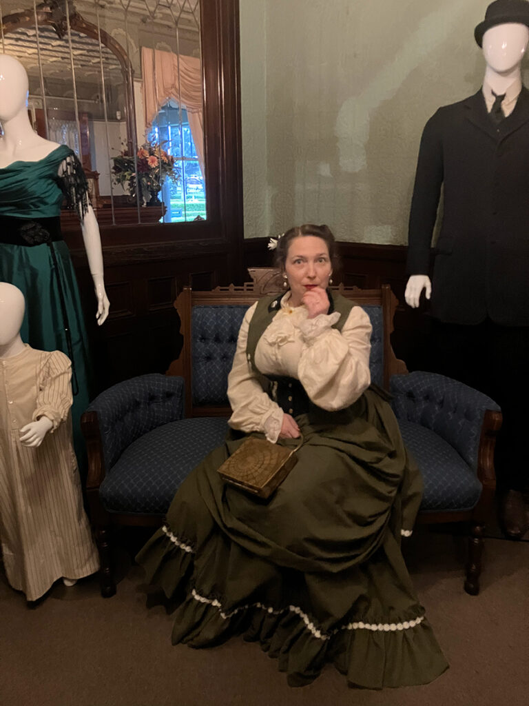 For those unfamiliar, the creative hostess of our evening was Diana of the Vogel Victorian. Diana is living the dream in her gorgeous Victorian home. For the past two years, she gets to dress up and host haunted high tea parties four months at a time. I got to learn quite a bit about Diana thanks to episode 51 of By Pumpkin’s Light. Be sure to give the episode a listen and follow Diana on the Vogel Victorian Instagram! The episode was quite the delight as I finished sewing details onto my look for the haunted tea. This past weekend at Winchester won’t be the only places to encounter the Vogels this year. Keep up with them on social media as they bring their tea parties on the road! Their next stop will be at the Lizzie Borden house in May for Mother’s Day.